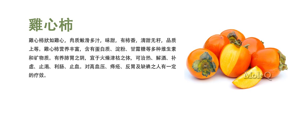 雞心柿 August 19, 2016March 9, 2017 admin水果, 浆果类 雞心柿: 原產地: 中国 种类: 漿果類 口感: 甜 丰收季节: 9月至12月 營養值 1 个 (25克) 卡路里 32 *每日%值是根据2000卡路里的饮食。取决于你的热量需求, 每天的值可能更高或更低。 量/份 %每日值* 脂肪 0.1g 0% 飽和脂肪 0g 0% 胆固醇 0mg 0% 钠 0mg 0% 钾 78mg 2% 量/份 %每日值* 碳水化合物 8g 2% 膳食纤维 糖 蛋白质 0.2g 1% 維生素 A 0% 維生素 C 27% 維生素 D 0% 钙 0% 維生素 B12 0% 維生素 B6 0% 镁 0% 铁 3% Article By : admin
